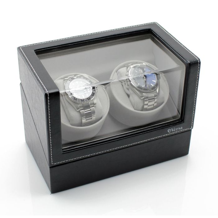 The Versa Elite automatic double watch winder is the latest design to wind your automatic watches. The Versa Elite line of watch winders are made of quality materials to wind and store all your nice watches. The watch winder has a built in program that allows you to set the winder to four different turns per day and three direction settings.Feature Description: